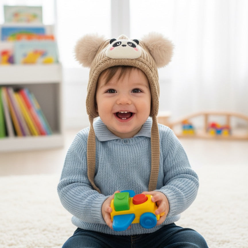 Keep your little one warm and stylish with this charming panda-themed woolen cap. Crafted from soft, quality wool, this cozy hat features an adorable panda design that kids love. The adjustable strap ensures a secure, comfortable fit as your child grows, preventing accidental loss during outdoor play. Perfect for winter outings, school, or casual wear, this durable cap provides excellent insulation while maintaining breathability. The playful panda motif adds personality to any outfit, making it both functional and fun for active children.