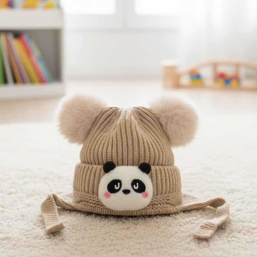 PANDA KIDS WOOLEN CAP/HAT WITH STRAP